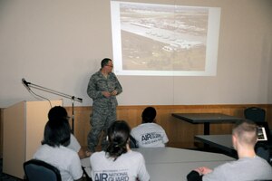 April 14, 2013 Historical briefing given on base namesake During the April unit training assembly, TSgt. Dan Heaton, a 127th Public Affairs photojournalist and aviation historian in his off duty hours, presented a lecture based from two of his published books to the 127th Wing and a captive audience of student flight members beginning their journey in the