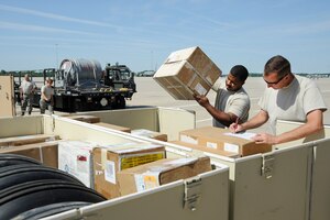 June 8, 2012 Swapping out cargo for deployment Airmen from many 127th Wing squadrons reloaded cargo placed in individual shipping units (ISUs) from a C-130 Hercules to a KC-135 Stratotanker to ship to Estonia on June 8, 2012. The cargo equipment is headed to Saber Strike 12, a US Army European command-led theater security cooperation exercise