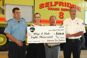 Aug. 8, 2008 Selfridge Firefighters Help Local Children The Selfridge Air National Guard Base Fire Department presented an $8,000 check to Wigs 4 Kids, a non profit charity that provides wigs for children who suffer from hair loss due to some form of illness on August 6. Ms. Maggie Varney, founder and CEO of Wigs 4 Kids, received the check from Fire
